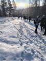 Oddział Miejski PTTK w Radomiu i p. Sławkiem Mazgajczykiem wyruszyliśmy na pierwszą ratę 56. Zimowego Rajdu na Raty na trasie z Lesiowa przez Lisów do Woli Bierwieckiej. Mimo, że Pani Zima zabarwiła nam włosy i rzęsy na biało, a policzki i dłonie na czerwono, nie przeszkodziła nam to na podziwianie jej uroków. Skute lodem rzeczki i stawy, pobielone drzewa i krzewy, zachwycające różnorodnością śnieżynki - było na co popatrzeć. Ostatnio wędrowaliśmy tymi ścieżkami w maju, kiedy z nieba lał się żar, a potem deszcz
