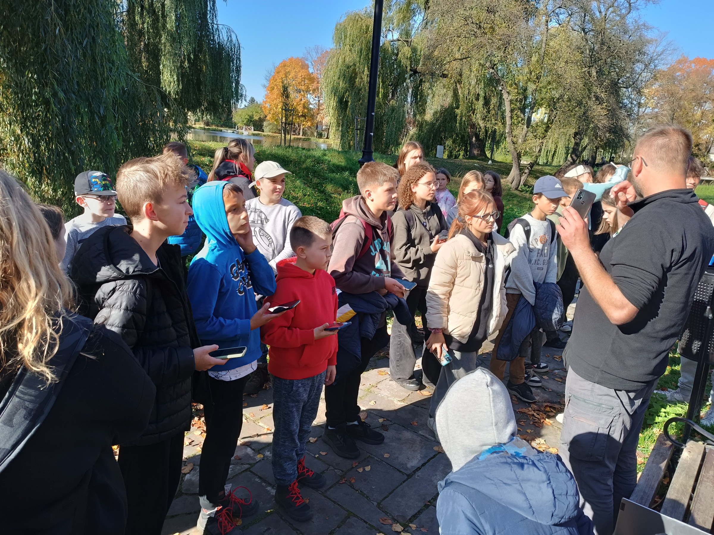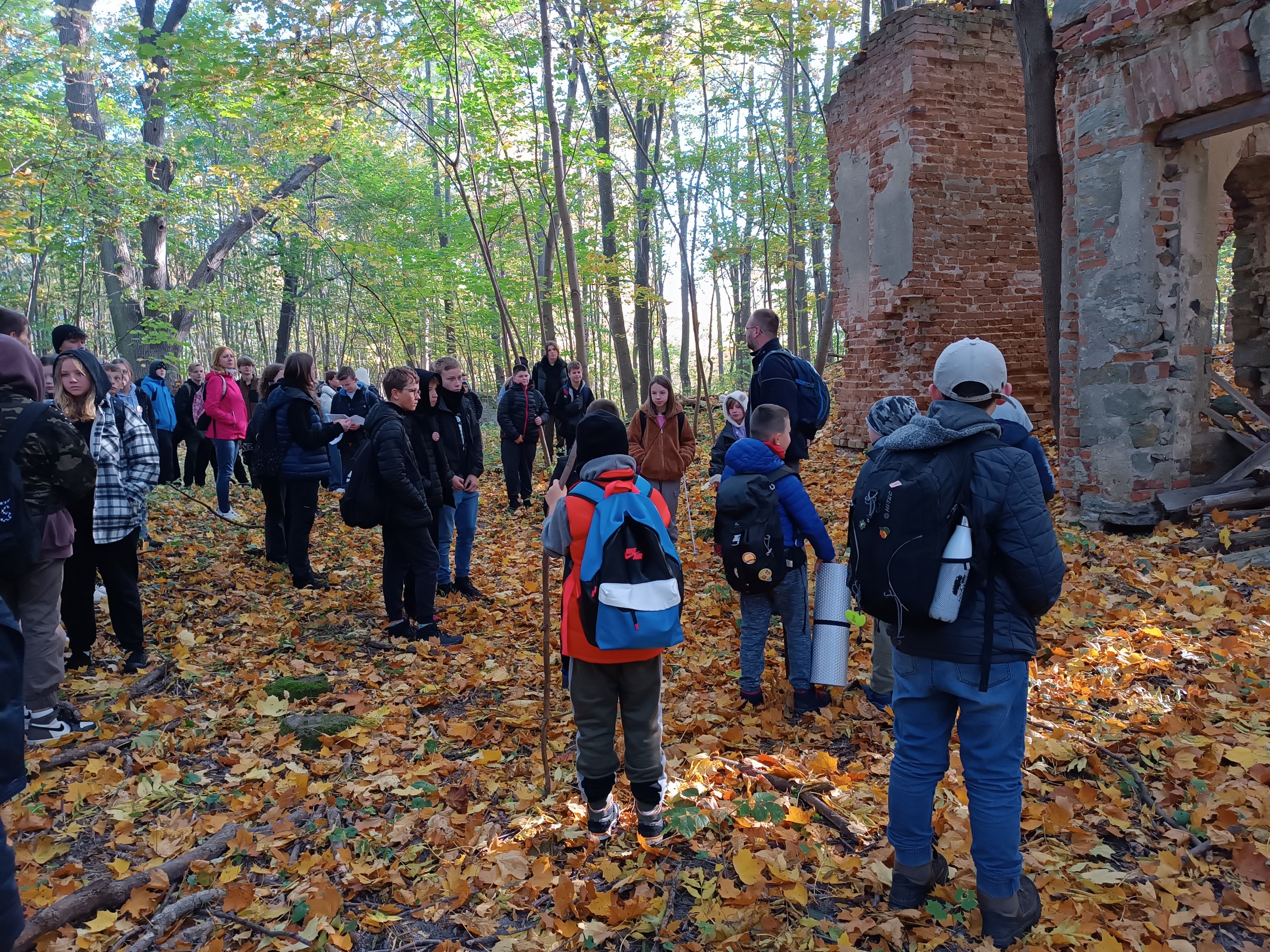 W trakcie wędrówki uczniowie rozwiązywali test wiedzy dotyczący trasy, Szydłowca i historii PTSM. Wyzwaniem miało też być ułożenie łamańców językowych inspirowanych nazwami odwiedzanych miejscowości. Z rozmów zasłyszanych w trakcie wędrówki wynika jednak, że zabawa polszczyzną to codzienna praktyka uczniów. Łąkami i lasami gromadka piechurów dotarła do Marywilu, gdzie przy ruinach młyna Pan Łukasz wyjaśnił tajemnice rzekomego spotkania w tym miejscu majora Henryka Dobrzańskiego "Hubala" i generała Stefana Roweckiego "Grota". Podziwiając piękną polską złotą jesień turyści dotarli do Szydłowca. 12-kilometrowa trasa nie była wyjątkowo wyczerpująca, jednak młodzież chętnie odpoczęła w zabytkowym parku przy zamku w Szydłowcu. Zamek został wybudowany w latach 1470–1480 z inicjatywy Stanisława Szydłowieckiego. W latach 1515-1526 Mikołaj Szydłowiecki rozbudował zamek w renesansową rezydencję oraz sprowadził z Pragi do szydłowieckiego kościoła relikwie św. Zygmunta. Mikołaj założył także park wokół zamku, poszerzył fosę oraz utworzył zwierzyniec i ogród włoski.