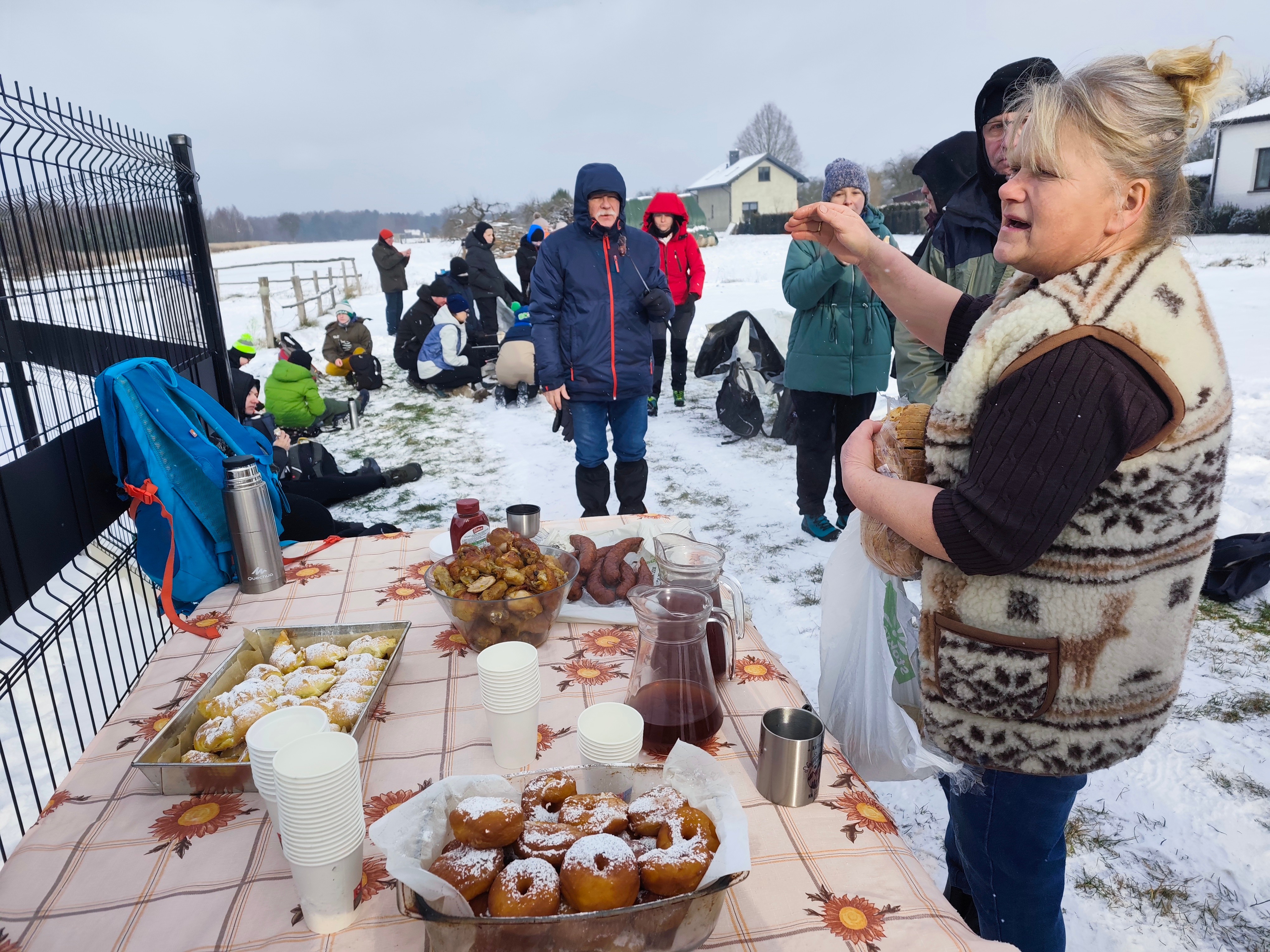 Oddział Miejski PTTK w Radomiu i p. Sławkiem Mazgajczykiem wyruszyliśmy na pierwszą ratę 56. Zimowego Rajdu na Raty na trasie z Lesiowa przez Lisów do Woli Bierwieckiej. Mimo, że Pani Zima zabarwiła nam włosy i rzęsy na biało, a policzki i dłonie na czerwono, nie przeszkodziła nam to na podziwianie jej uroków. Skute lodem rzeczki i stawy, pobielone drzewa i krzewy, zachwycające różnorodnością śnieżynki - było na co popatrzeć. Ostatnio wędrowaliśmy tymi ścieżkami w maju, kiedy z nieba lał się żar, a potem deszcz